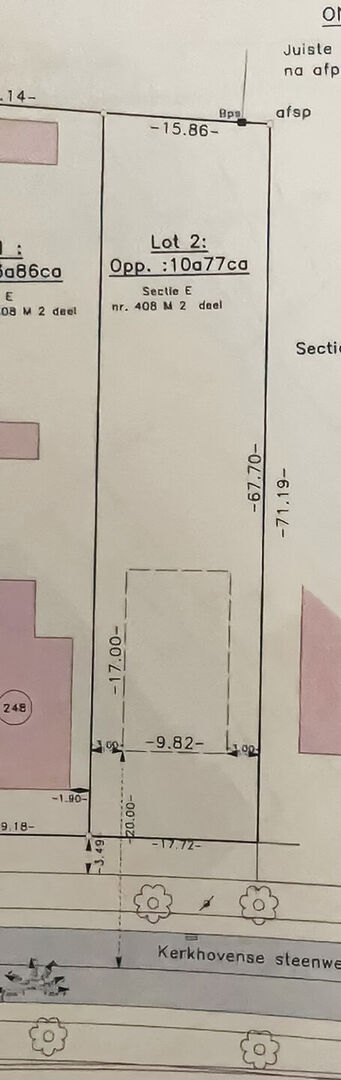Het perceel beschikt over een straatbreedte van 17,72 meter en een diepte van 67,70 meter, wat zorgt voor een ruimtelijk gevoel en tal van bouwmogelijkheden. De toegelaten bouwbreedte bedraagt 9,82 meter. Op het gelijkvloers kan er gebouwd worden tot 17 meter diep, met op de verdieping een bouwdiepte tot 12 meter.