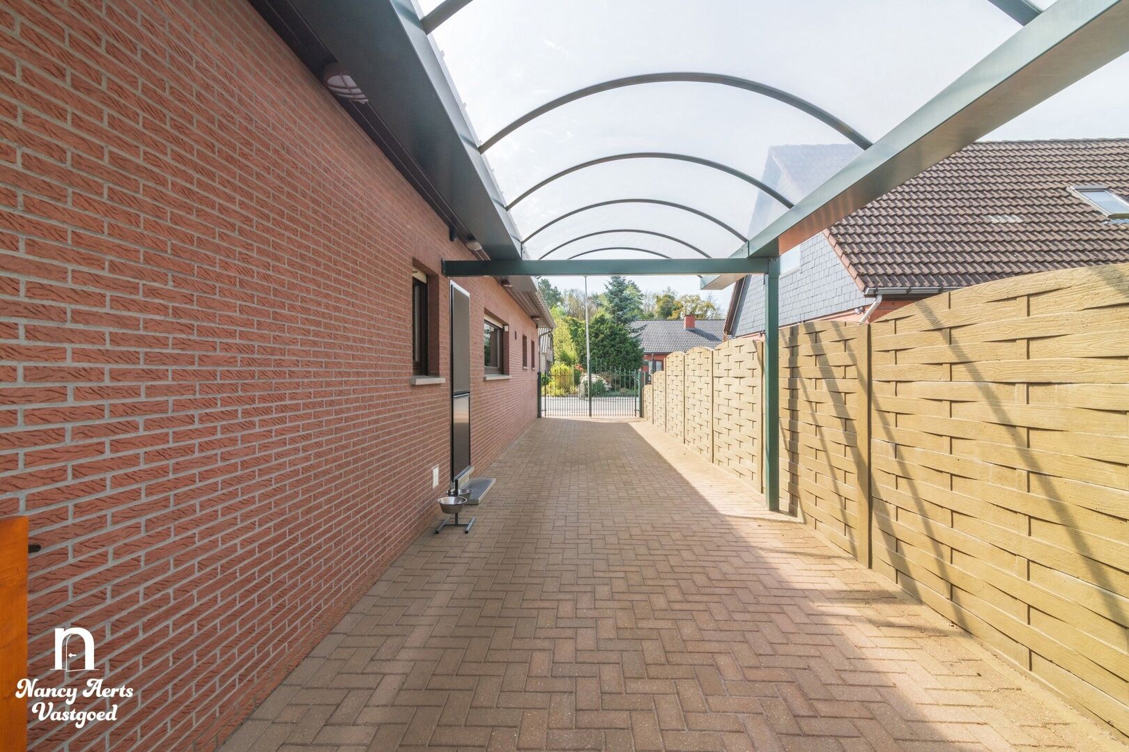De woning beschikt over rolluiken, een inpandige garage met sectionale poort en een carport naast de woning. Achteraan bevindt zich nog een tuinberging.