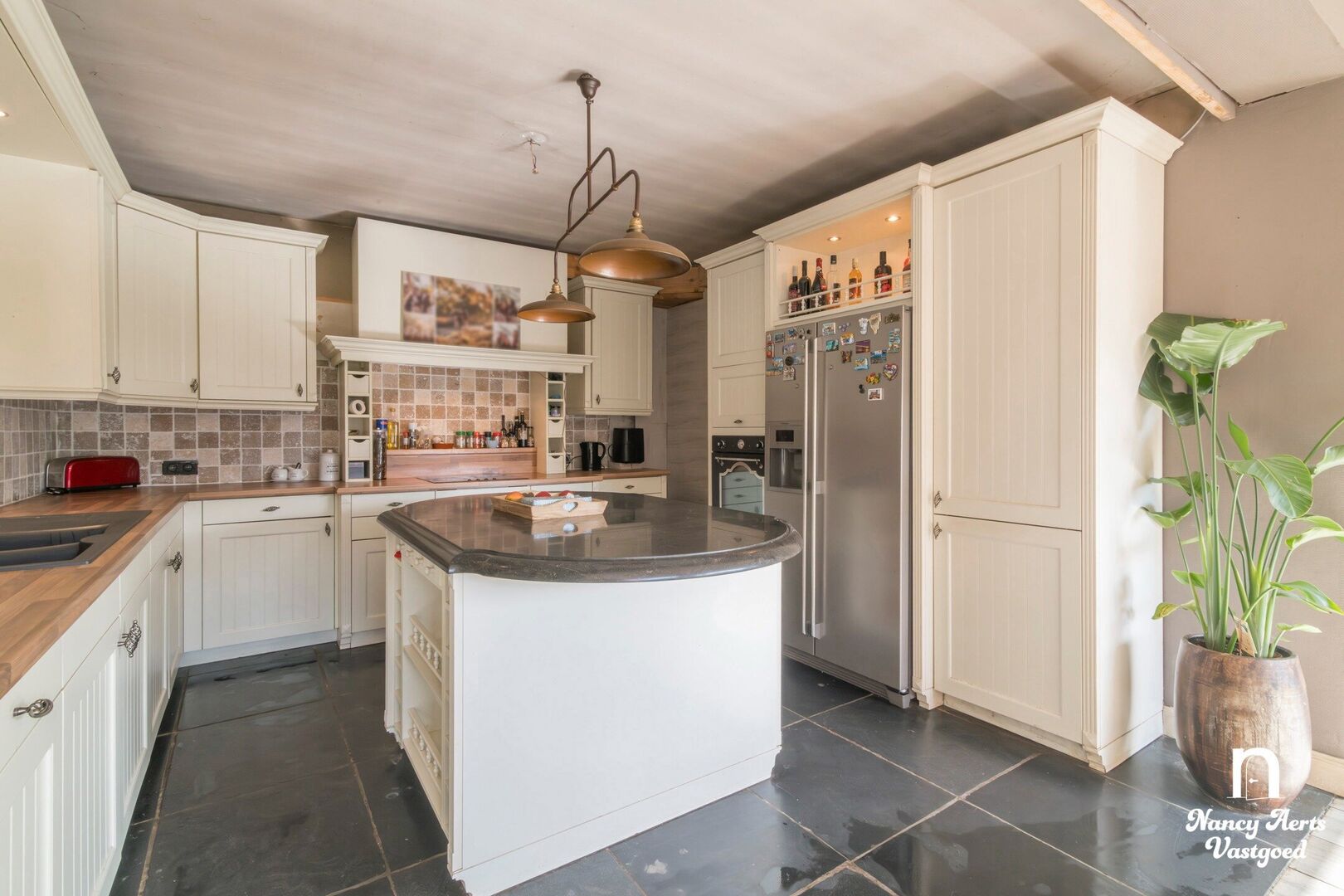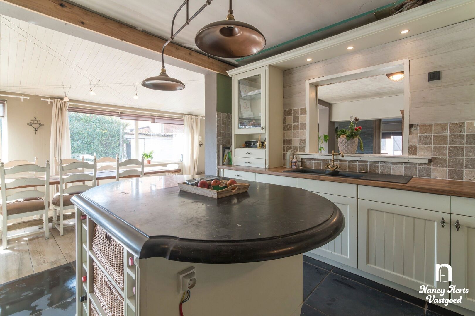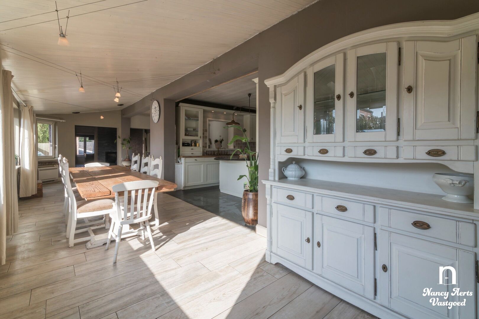 De woning beschikt over een bewoonbare oppervlakte van 259 m² en werd in het verleden deels grondig gerenoveerd. De benedenverdieping werd volledig opengetrokken, wat zorgt voor een ruime en lichtrijke leefruimte. Grote raampartijen laten veel natuurlijk licht binnen. De open, rustieke keuken met eiland vormt het centrale punt van de woning. Aansluitend is er voldoende plaats voor een grote eettafel. Naast de keuken bevindt zich de zithoek met tv-hoek. Vooraan in de woning is een aparte bureauruimte ingericht, ideaal voor thuiswerk of zelfstandige activiteit.