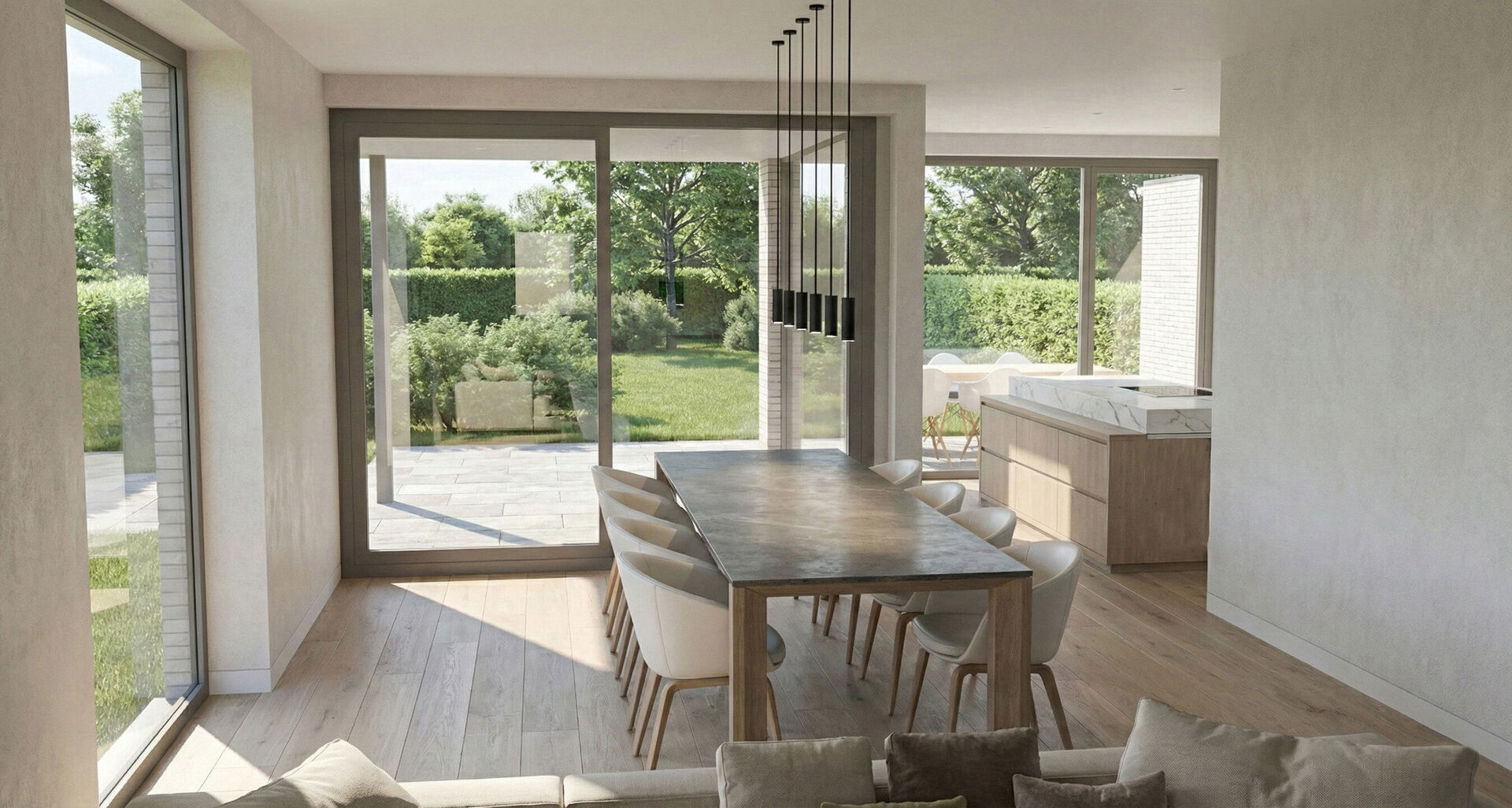 De woning wordt gerealiseerd met aandacht voor hedendaagse bouwkwaliteit en energiezuinig wonen, volledig volgens de BEN-normen. De combinatie van een strakke architectuur met warme materialen zorgt voor een stijlvolle uitstraling die mooi aansluit bij de groene omgeving. Dankzij de hoge isolatienormen, vloerverwarming en warmtepomp geniet je van een aangename woonbeleving, met zonnepanelen die het energieverbruik verder drukken. De werken starten op 2 maart 2026.