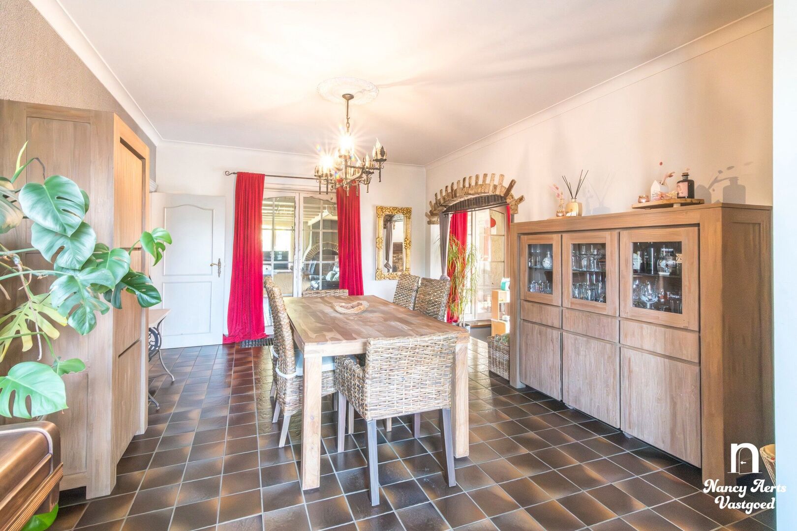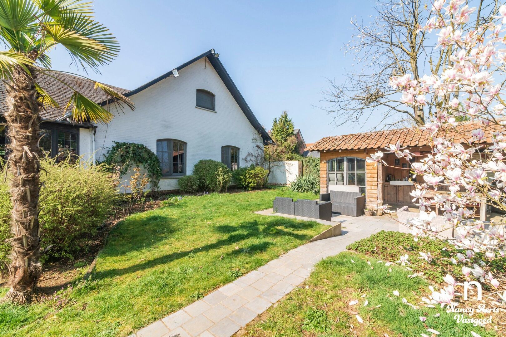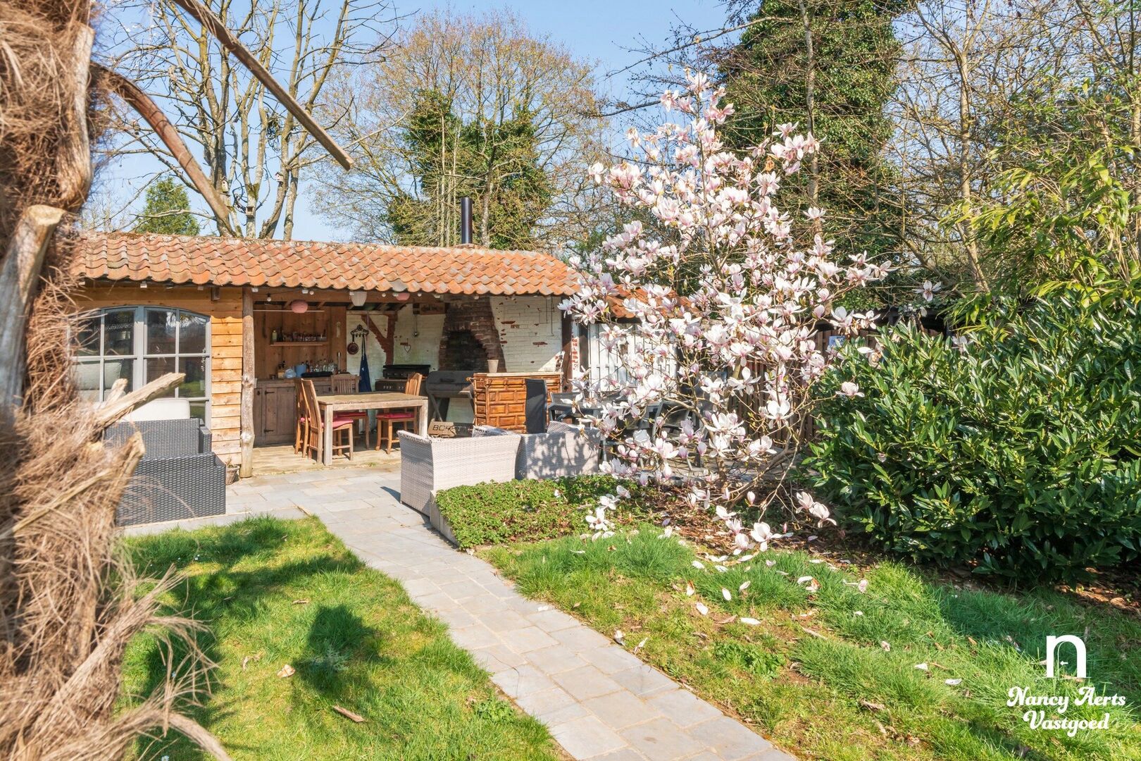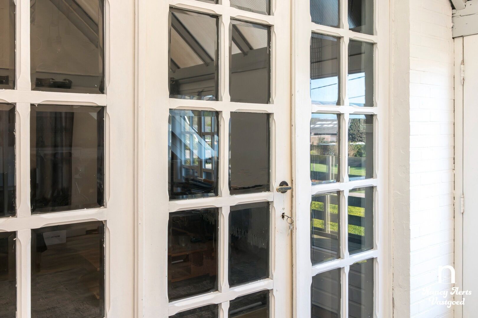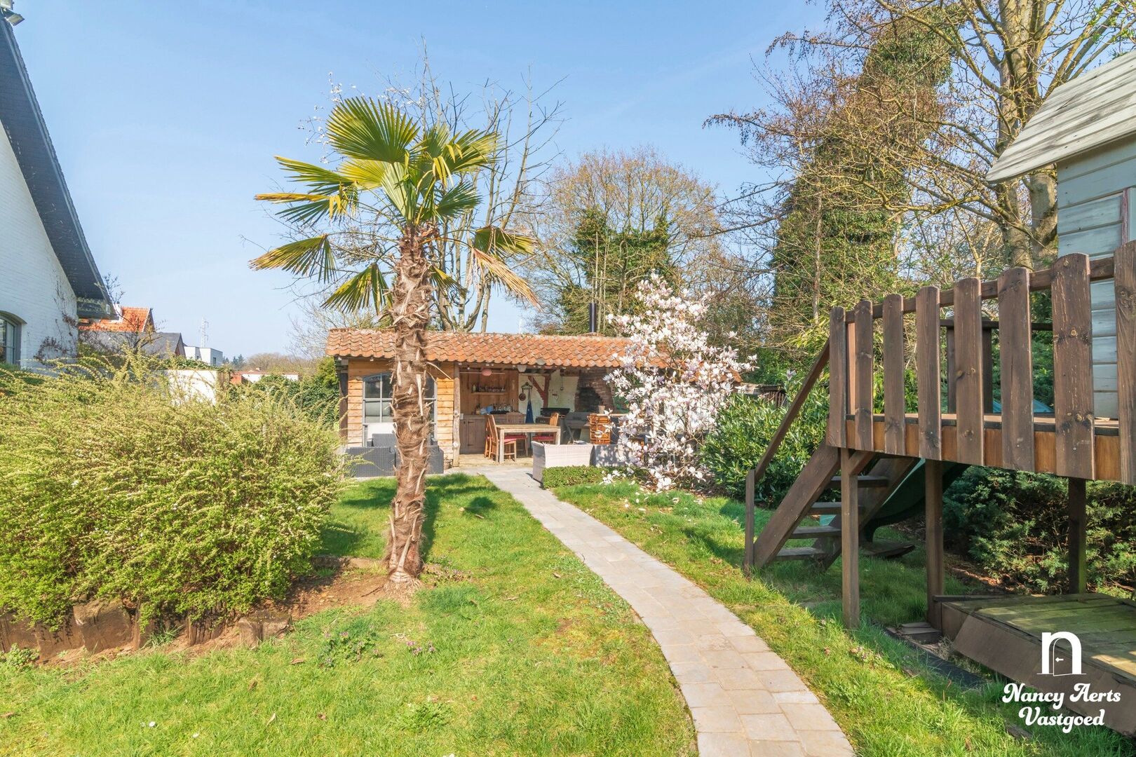 Achteraan strekt de woning zich uit naar een ruime veranda, die aanvoelt als een volwaardige leefruimte. Hier leef je mee met de seizoenen, met zicht op de tuin en voldoende plaats voor zowel een zithoek als een eettafel.