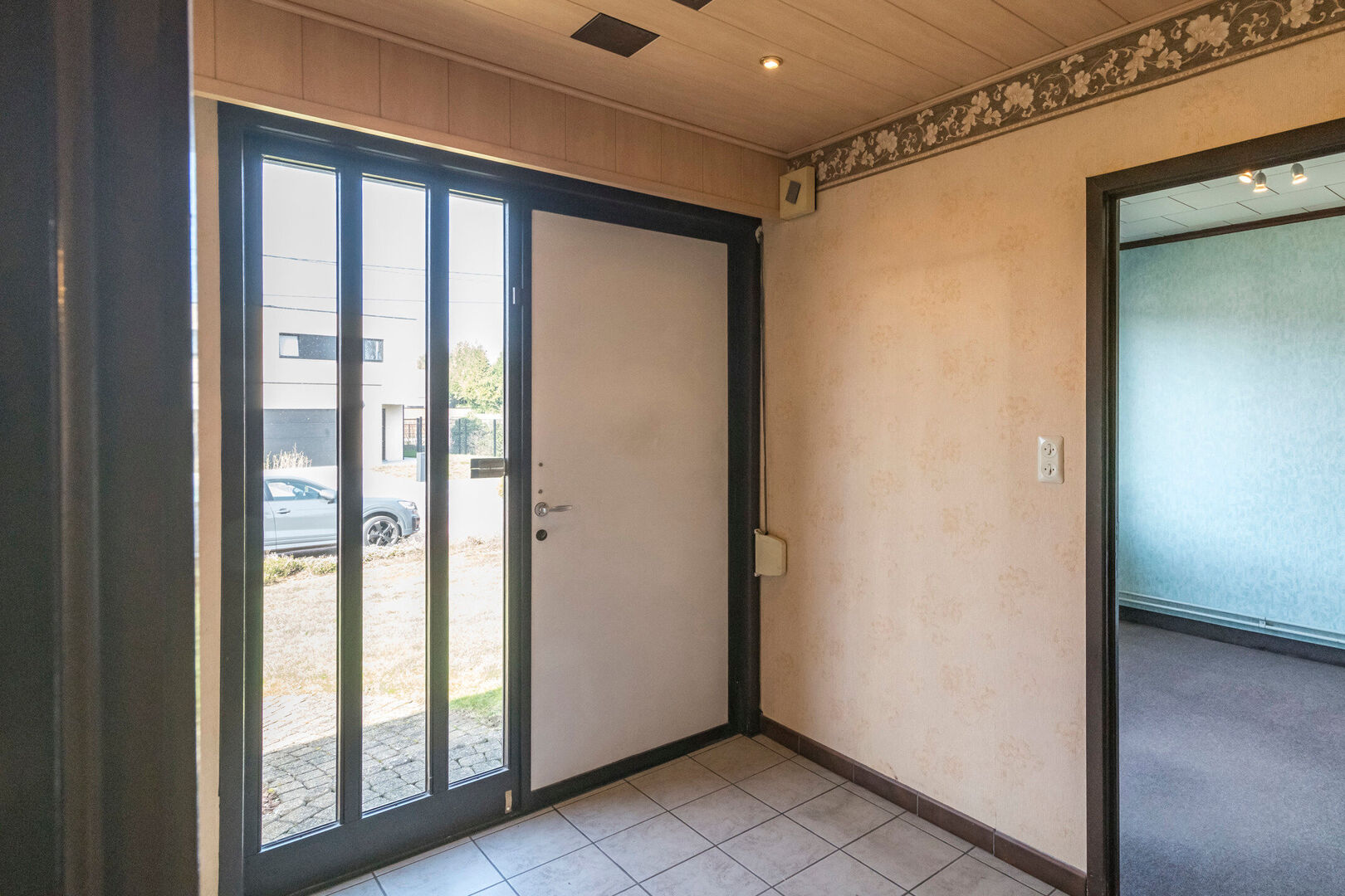 Aansluitend aan de woning ligt een veranda die een mooie overgang vormt tussen binnen en buiten en waar u in elk seizoen van de tuin kan genieten. Achteraan de woning bevindt zich bovendien een inpandige garage die elektrisch te bedienen is met een afstandsbediening. Alle ramen in de woning zijn voorzien van rolluiken en de woning beschikt ook over een alarmsysteem.