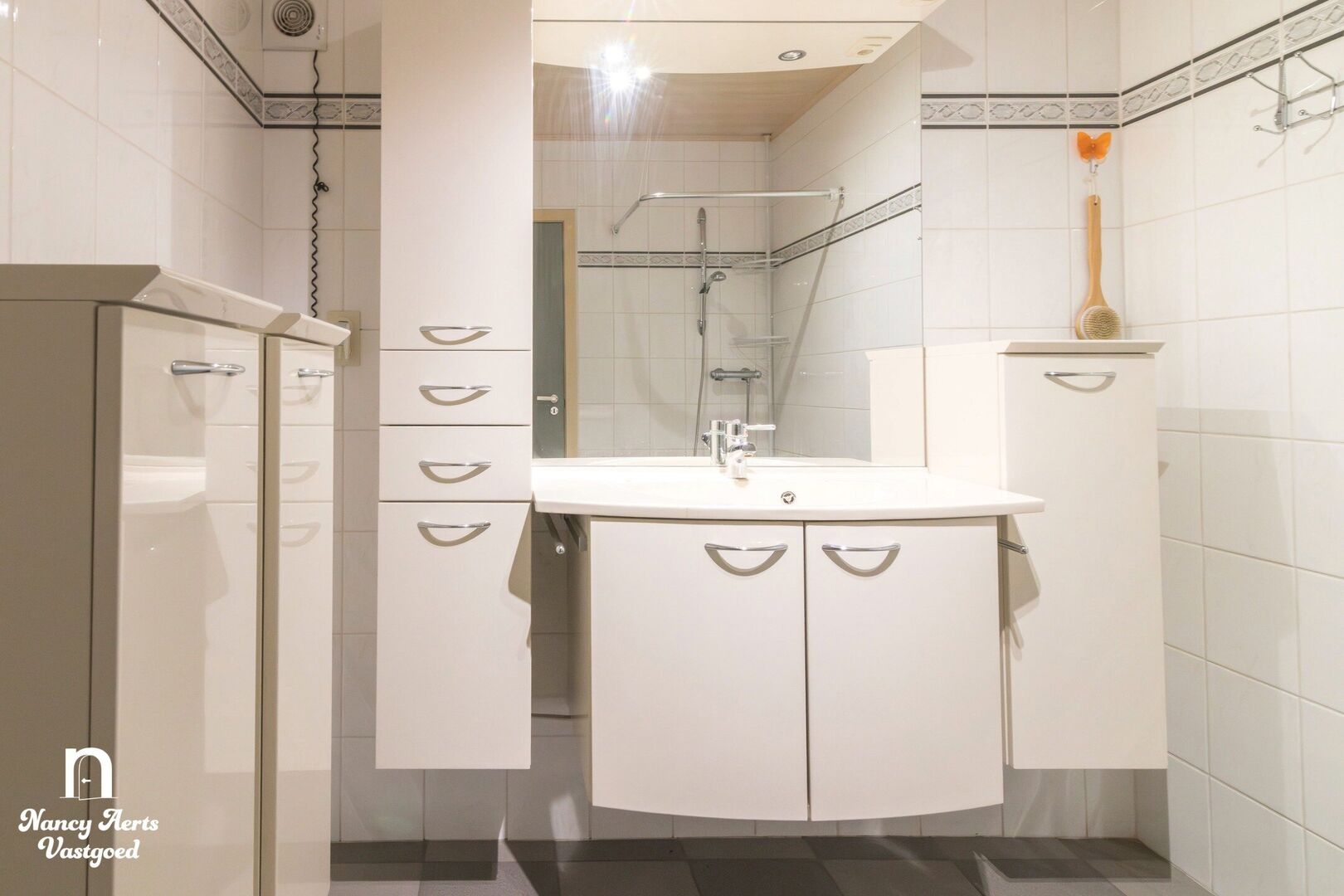 Via de nachthal bereik je drie slaapkamers, waarvan één momenteel ingericht is als dressing. De badkamer is uitgerust met een lavabomeubel en douche.