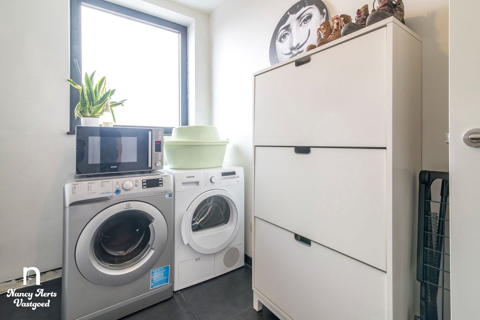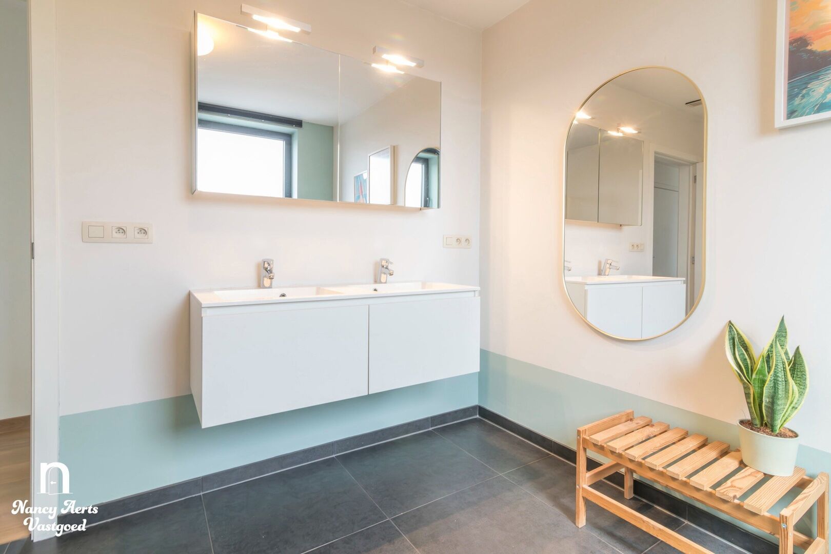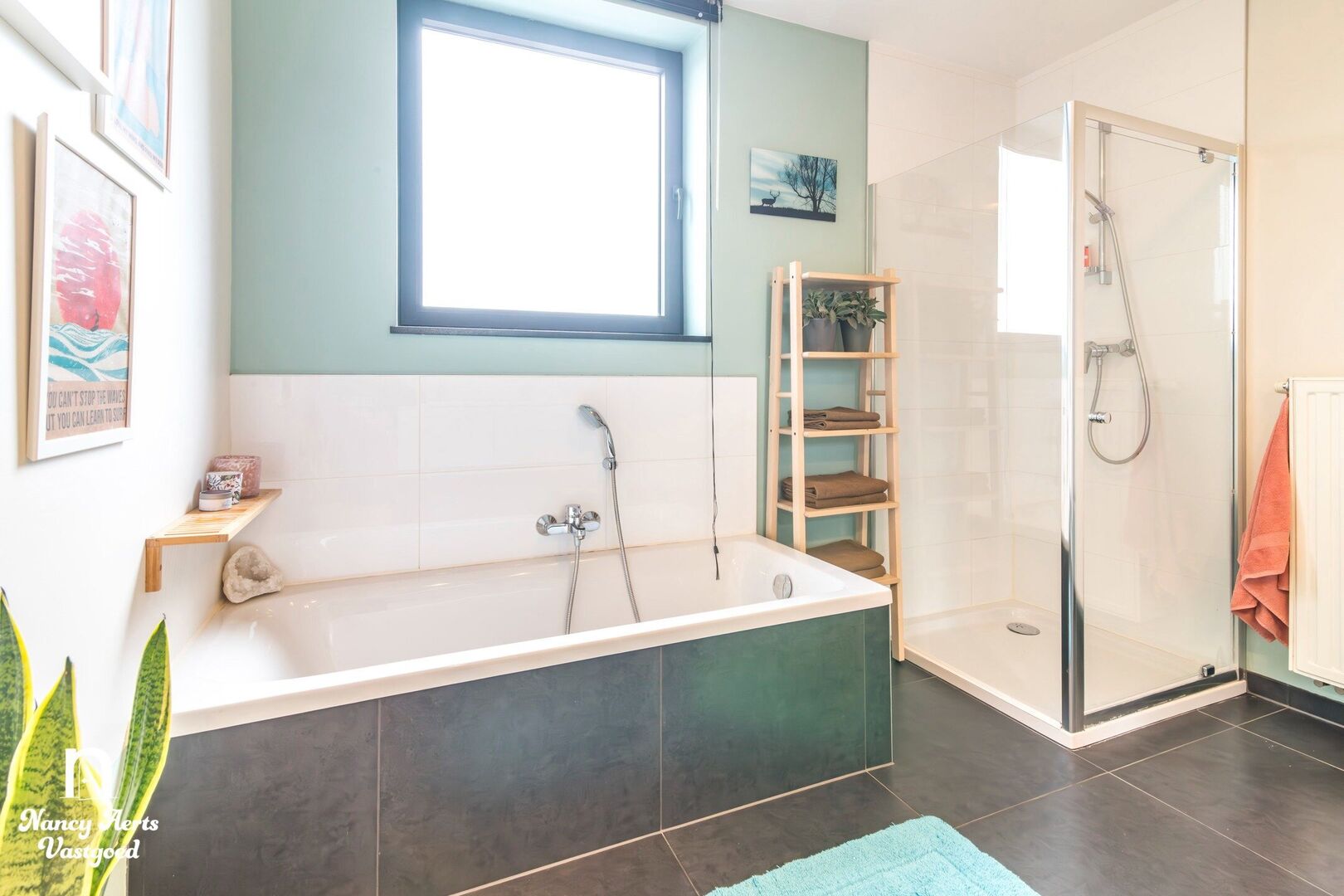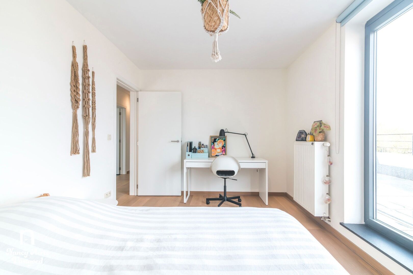 De twee slaapkamers zijn volwaardig en genieten, net als de leefruimte, van ramen tot op de vloer, wat zorgt voor een aangenaam open gevoel. De badkamer is praktisch ingericht met een dubbel lavabomeubel, ligbad en aparte douche. Daarnaast is er een apart gastentoilet en een ruime berging met aansluitingen voor wasmachine en droogkast.